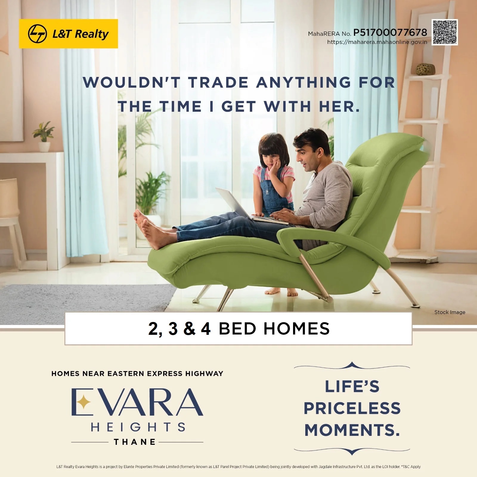 L&T Evara Heights Thane Project will be constructed on 12.5 acres of land parcel consisting of 3 towers with 2 Basement + Ground + 5 Podium + 55 Floors having 2 BHK, 3 BHK, 4 BHK premium residences. LNT Evara Project is located Behind Viviana Mall, Pokhran Road, Thane with - Viviana Mall - 650m, Majiwada Circle - 1.5km, Thane Station - 3.8km. L&T Realty Thane Pokhran Road Project first is Internal amenities - Vitrified Tile, Granite Kitchen, stai...less steel sink, CCTV & many more. Evara Heights Thane West External Project has 35+ amenities with likes of - Swimming pool, Gymnasium, Indoor Game, Kid's Play area, Jogging track & Many More. L&T Thane Evara Project has one types of car parking facility - Ground. L&T Realty Thane west Possession - Rera Possession - August 2030 and Target Possession - December 2029. Carpet Area & Floor Plan of L&T Thane New Project has 2BHK, 3BHK, 4BHK premium residences with - 2BHK - (750 to 850) sqft. 3BHK - (1050 to 1250) sqft and 4BHK - (1900 to 2250) sqft. LNT Evara floor plan will have 6 flats 2 lifts & 2 staircases on each floor. L&T Realty Thane Project maintenance varies with the configuration and the carpet area which are as follows- 2BHK - Rs (5300 - 6000) per month, 3BHK - Rs (7400 - 8700) per month, 4BHK - Rs (13300 - 15700) per month. Realty Thane Pokhran Road Prices & its details can be found in the price section & L&T Realty Thane Pokhran Road brochure can be downloaded from the link mentioned below. Project has been praised by the home buyers & L&T Realty Pokhran Road review is 4 out of 5 from over all the clients who have visited the site.